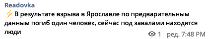 В Ярославле в 10-этажном доме прогремел взрыв газа, часть здания с 3 по 5 этажи обрушилась pic.twitter.com/yUDAlIvyRr— Жизнь в Резервации (@CleanAuthoritie) August 21, 2020
