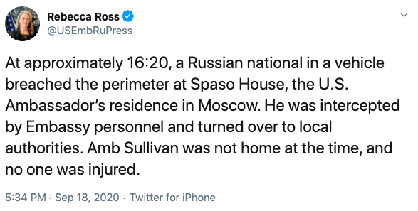Первой об этом сообщила в Twitter пресс-секретарь посольства Соединенных Штатов Ребекка Росс.