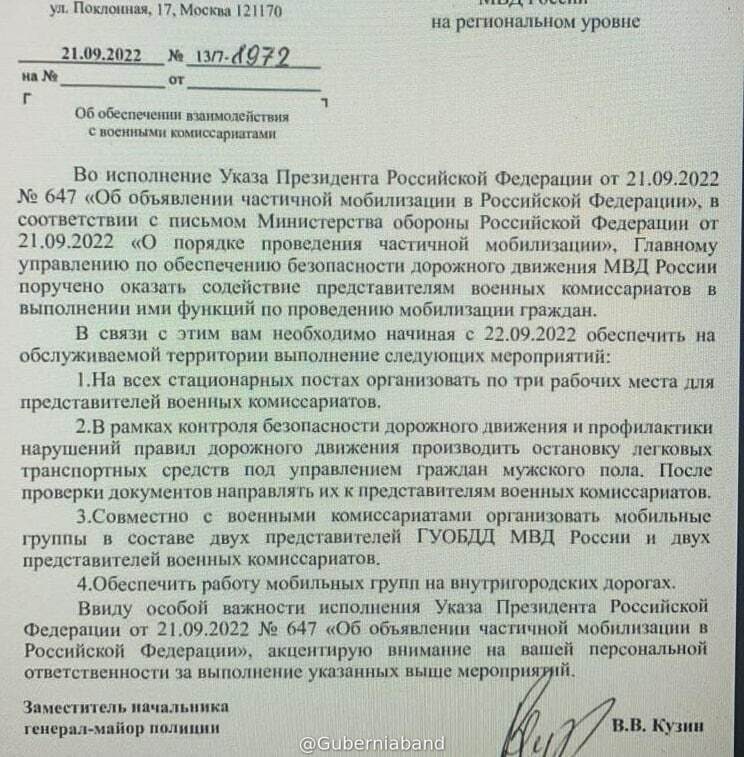 Распоряжение о запрете выезда 21 сентября было издано военным комиссаром Курской области, Татарстана, Дагестана, Псковской и Самарской области. Стоит ожидать, что соответствующие распоряжения появятся и по всем регионам.