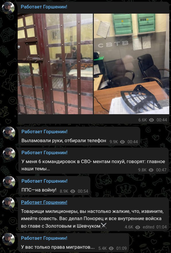 "15-го Золотов нам подписал награды, а сегодня мусара прикрывают на Тверской бандосов из кавказкой республики. И берут не их, а меня!" — истерит Горшенин.