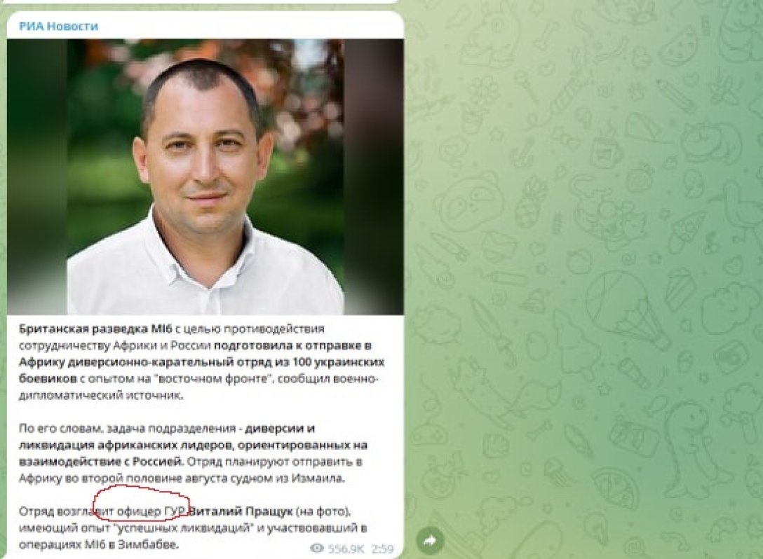 Сам же Пращук якобы имеет не только боевой опыт, но и проводил спецоперации в Зимбабве. Задача "диверсантов" – ликвидация всех африканских лидеров, ориентированных на союз с Россией.