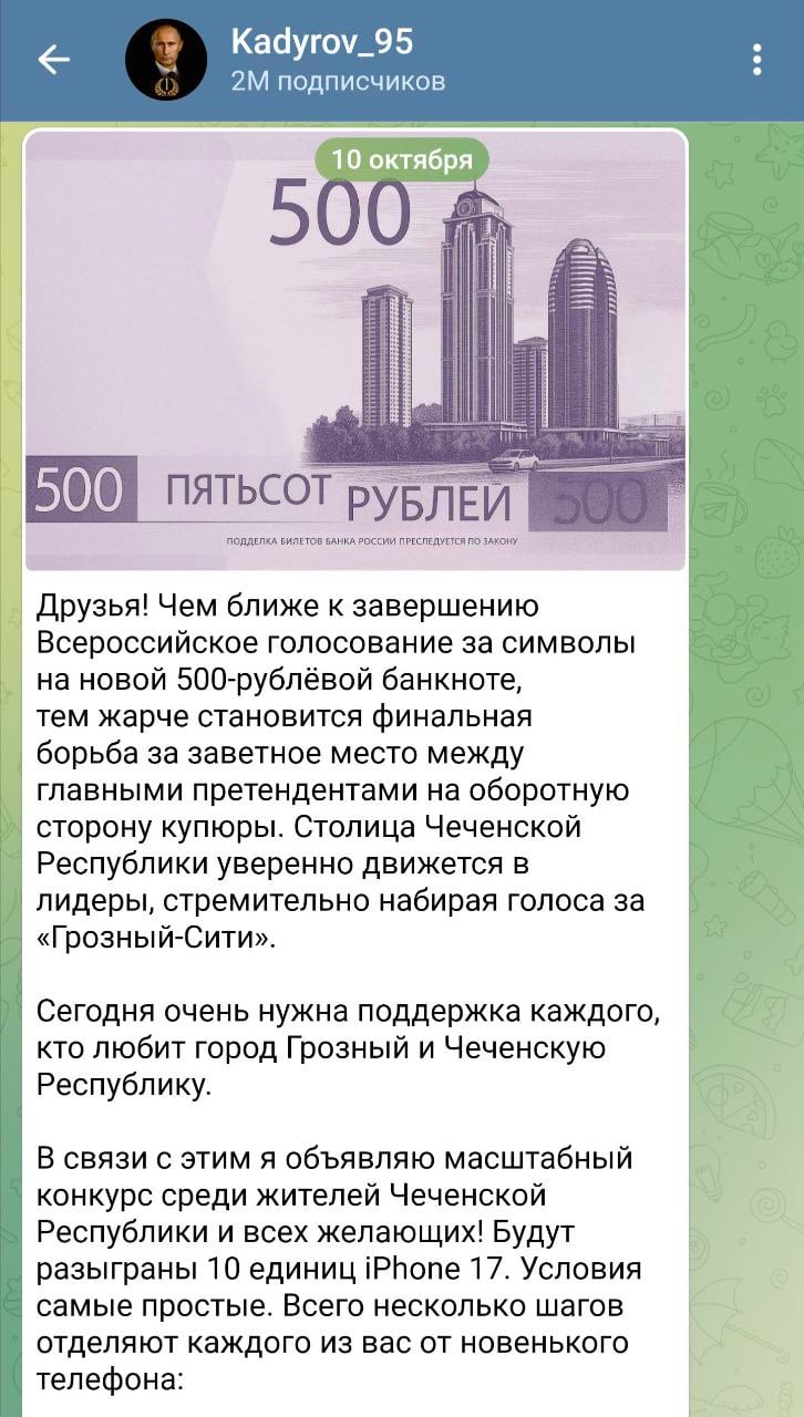 Глава Чечни Рамзан Кадыров активно продвигает "свой" вариант, обещая участникам голосования щедрые подарки. В частности, он объявил розыгрыш новейших iPhone 17 среди тех, кто отдаст голос за изображение Грозного. Такой шаг вызвал шквал возмущения в ультраправых кругах России.