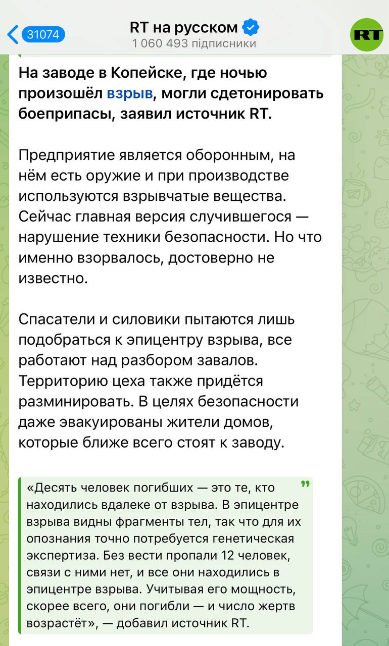 Российские СМИ сообщили про последствия взрыва на заводе "Пластмасс", намекая на ожидаемый резкий рост жертв в ближайшее время.