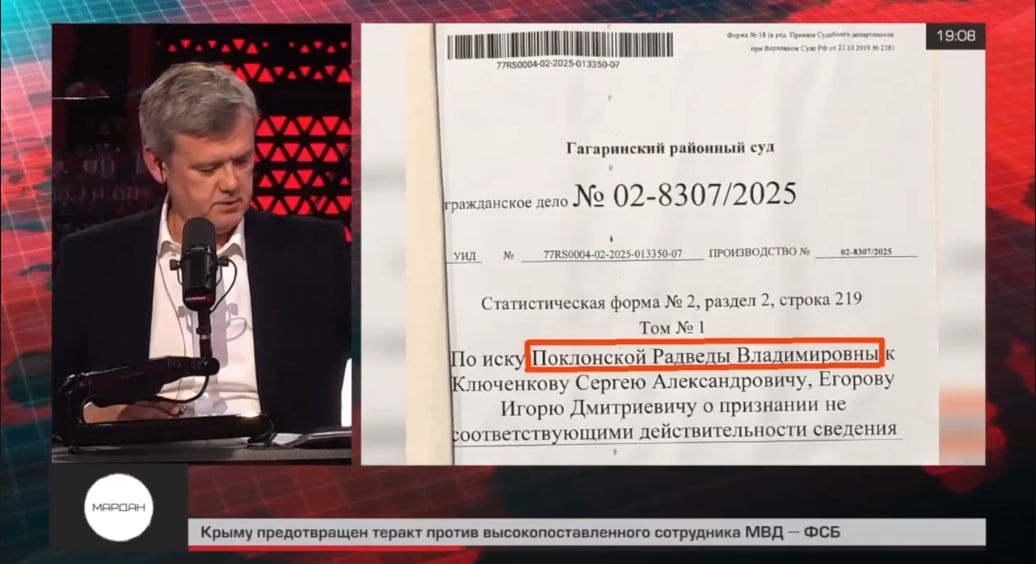 Поклонская подала иск против двух российских пропагандистов, которые разместили в Сети ее новые паспортные данные и посмеялись над ней в эфире пропагандисткой телепередачи.