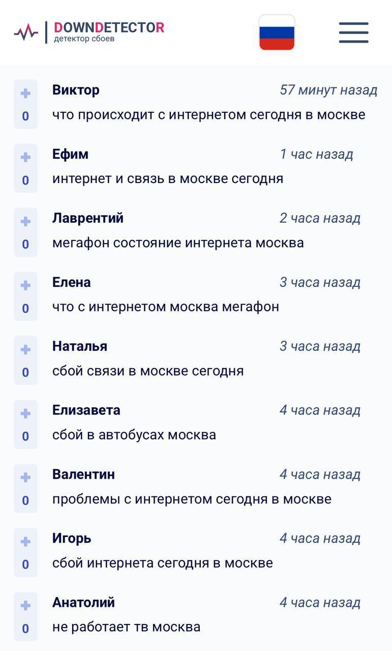 Утром 27 ноября пользователи по всей Москве сообщили о полном отсутствии как мобильной связи, так и домашнего Интернета. Аналогичная ситуация наблюдается в Белгородской, Брянской, Ростовской областях, а также во Владимире и Волгограде.