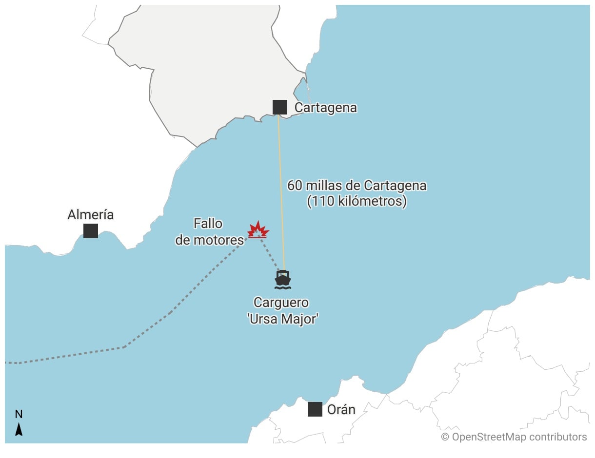 22 декабря судно резко изменило курс и потеряло ход, а уже на следующий день подало сигнал бедствия в 60 морских милях от Картахены.