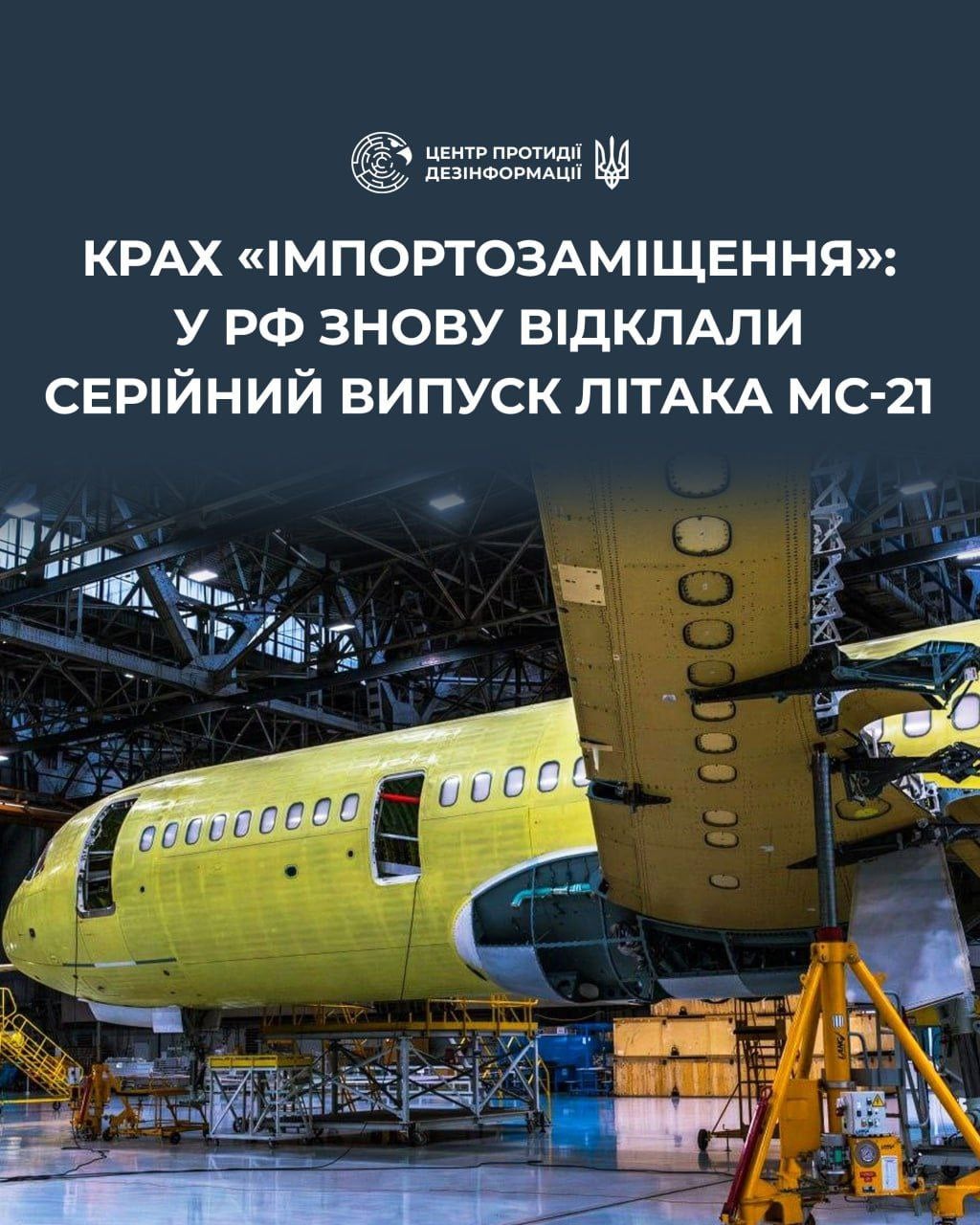 Российская авиационная отрасль продолжает демонстрировать провалы. Несмотря на громкие заявления о запуске серийного производства самолета "МС-21", проект, начатый еще в 2009 году, так и не вышел на рынок. Обещания властей о скором выпуске превратились в бесконечную череду переносов, а реальность показывает деградацию отрасли под давлением санкций и войны, сообщает Центр противодействия дезинформации.