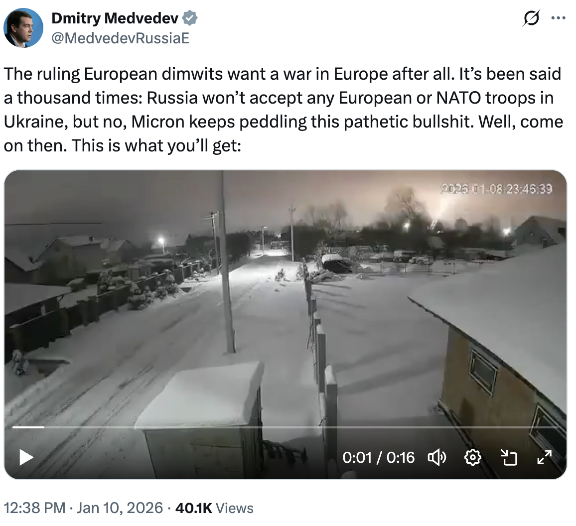 Экс-президент РФ остался верен своей привычной тактике оскорблений и запугиваний, отреагировав так на намерения европейцев ввести войска в Украину.