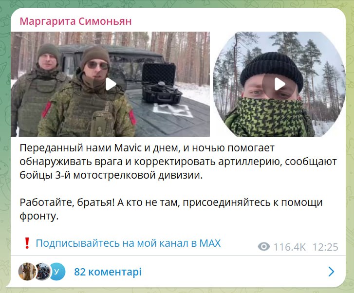 Фото разошлось по соцсетям и вызвало обсуждения. При этом внимание привлекло, что, несмотря на заявленную болезнь и смерь мужа, на канале Симоньян продолжаются сборы на войну - закупку дронов и оборудования для российских военных.
