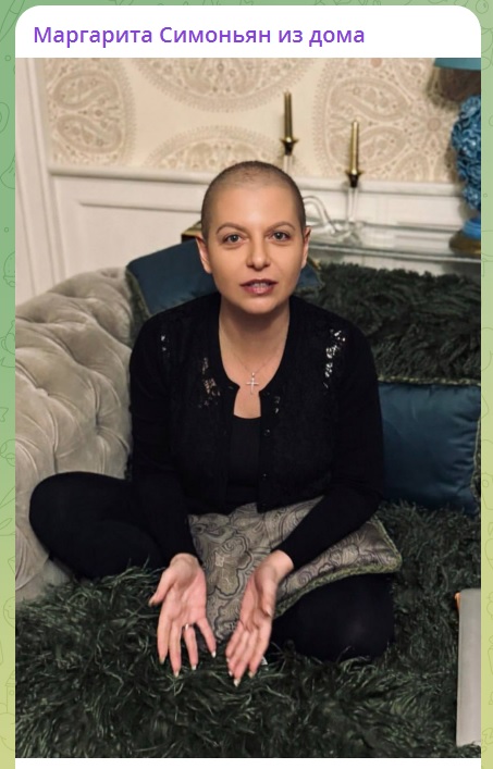 Кремлевская пропагандистка Маргарита Симоньян опубликовала фото, на котором показала себя без парика с полностью выбритой головой. Это последствия химиотерапии при лечении рака.