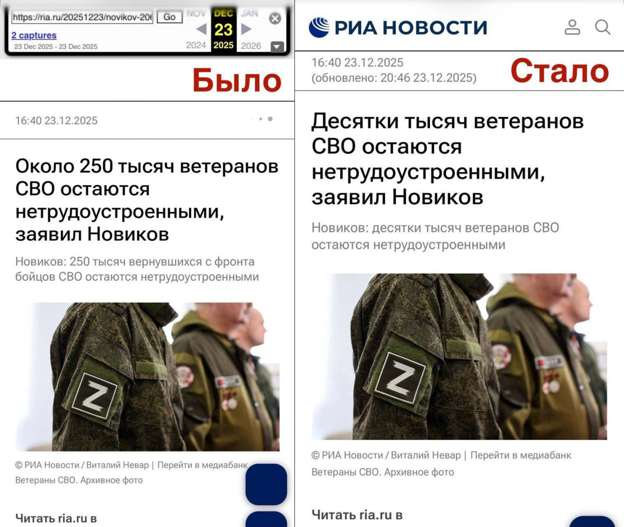 Однако позже эту информацию на сайте пропагандистского агентства "РИА Новости" отредактировали. Из заголовка и текста исчезла цифра в 250 тысяч, ее заменили размытым выражением "десятки тысяч". Во Faridaily отметили, что первоначальную версию публикации теперь найти невозможно.