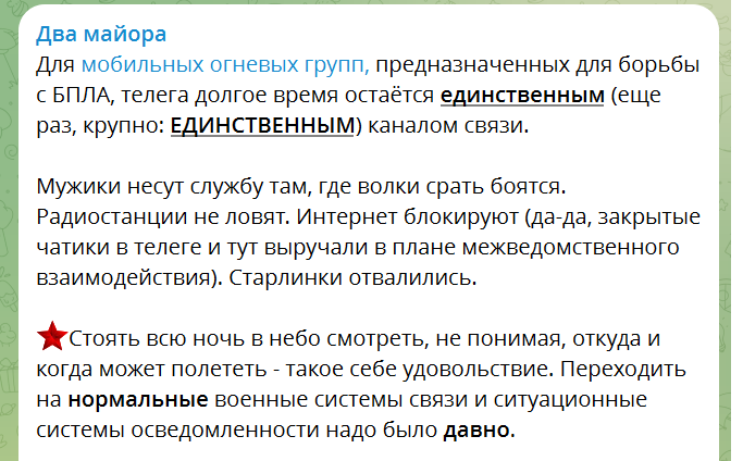 Отдельно подчеркивается, что "рабочей альтернативы" Telegram в армии РФ не существует.