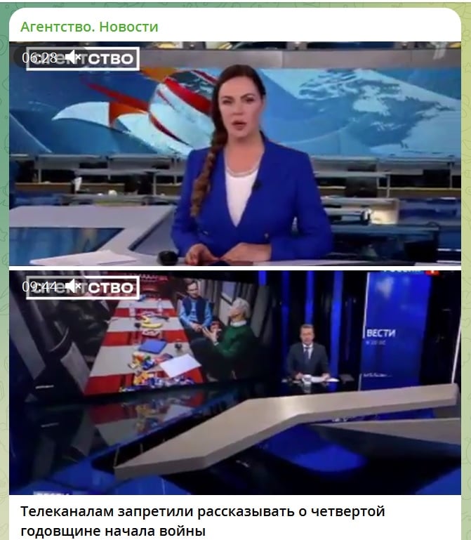 Абсолютно все каналы государственного российского телевидения получили запрет рассказывать о четвертой годовщине начала войны.