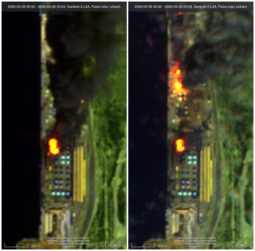 Спутники засняли новые очаги пожаров в порту Усть-Луга в РФ после повторной атаки украинских дронов