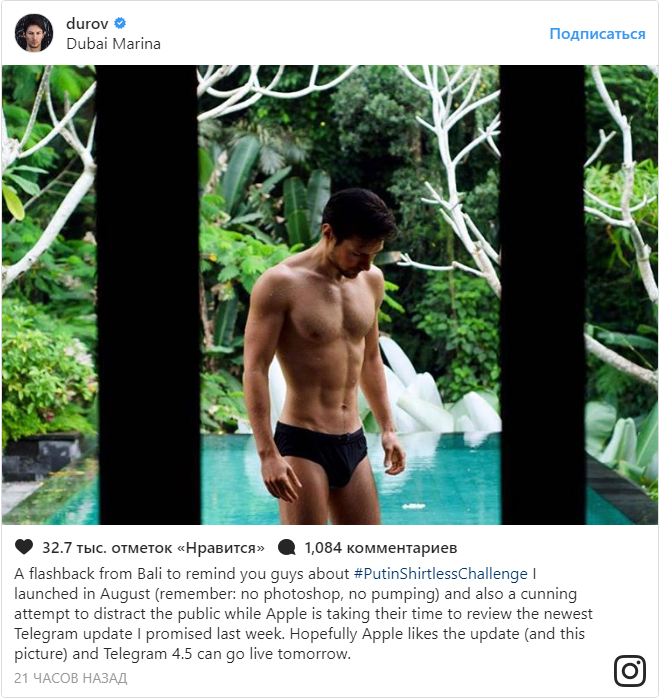 Дуров разделся ради очередного обновления