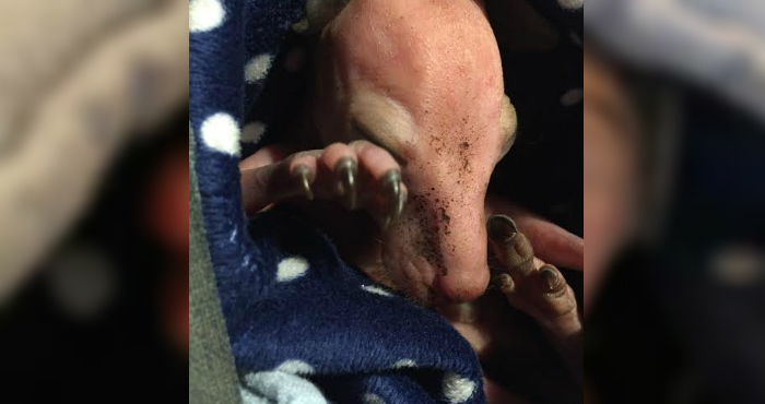 В Австралии автомобиль сбил животное и скрылся с места преступления. Правоохранители понимали, что виновника трагедии они уже не найдут, но случайно они заметили в сумке взрослой самки кенгуру еще одно маленькое животное. Малыш был в шаге от смерти.