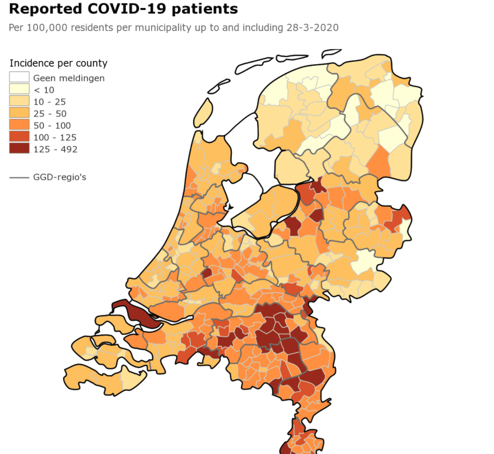 Кроме того, наиболее зараженной территорией в Нидерландах, остается провинция Северный Брабант с общим числом 2748 человек. Также случаи коронавируса были зарегистрированы в Южной Голландии (1508) и Северной Голландии (1401). По прежнему менее зараженными остаются провинции Фрисландия и Дренте.