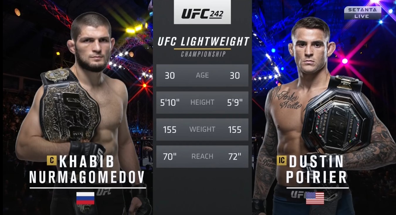 Стал известен победитель боя Хабиб Нурмагомедов – Дастин Порье. Предлагаем вашему вниманию прямую онлайн-трансляцию турнира по смешанным единоборствам UFC 242, который пройдет 7 сентября (мск) в Абу-Даби (ОАЭ). Главным событием турнира станет бой за титул чемпиона UFC в легком весе между россиянином Хабибом Нурмагомедовым и американцем Дастином Порье.