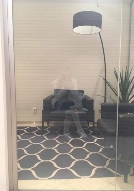 Фотограф даже добавил описание под фото, чтобы не возникло вопросов относительно его реального существования. На снимке девушка сидит напротив стекла, а кресло находится в другой комнате. Так вышло, что все случайно совпало и оказалось, что главная героиня как бы немного сидит в кресле.