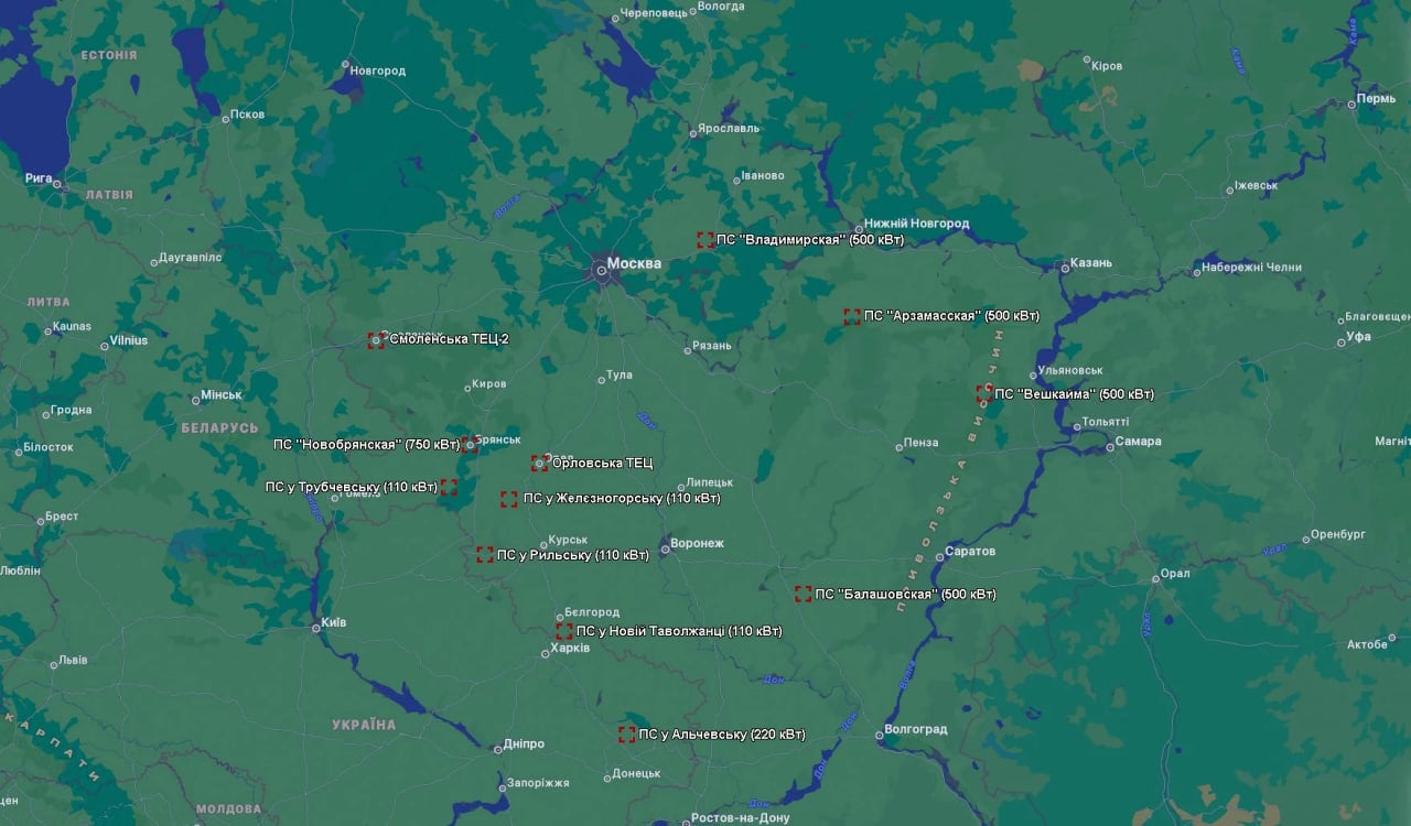 Найсерйозніший удар припав по підстанції "Володимирська" 750 кВ - ключовому вузлу між Сибіром та Москвою. Два попадання викликали масштабні пожежі на комутирувальному обладнанні та тимчасове відключення до 30 тисяч споживачів, включаючи промислові підприємства.