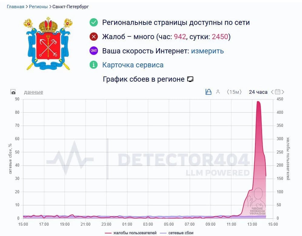 Тим часом перебої з мобільним Інтернетом спостерігаються й у Санкт-Петербурзі: користувачі повідомляють про недоступність сайтів, збої у роботі банківських сервісів, служб доставки та таксі.