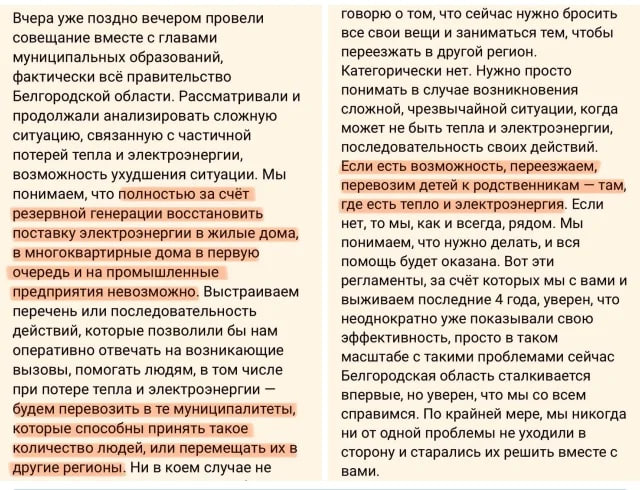 В опублікованих заявах губернатор наголошує, що нібито не йдеться про термінову втечу з регіону. Однак зміст його слів звучить однозначно: у разі погіршення ситуації влада не зможе допомогти людям.