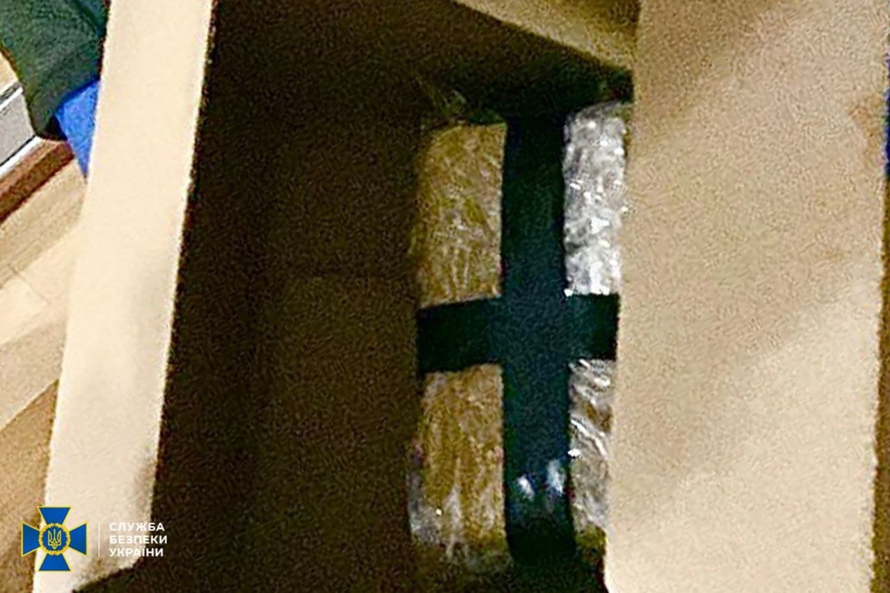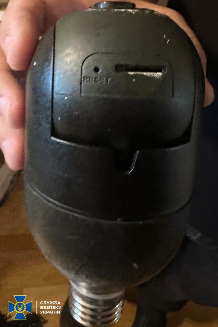 Під час обшуків у квартирі посібника окупантів СБУ вилучила елементи для збирання вибухового пристрою та міні-камеру, яка призначалася для фіксації наслідків теракту.