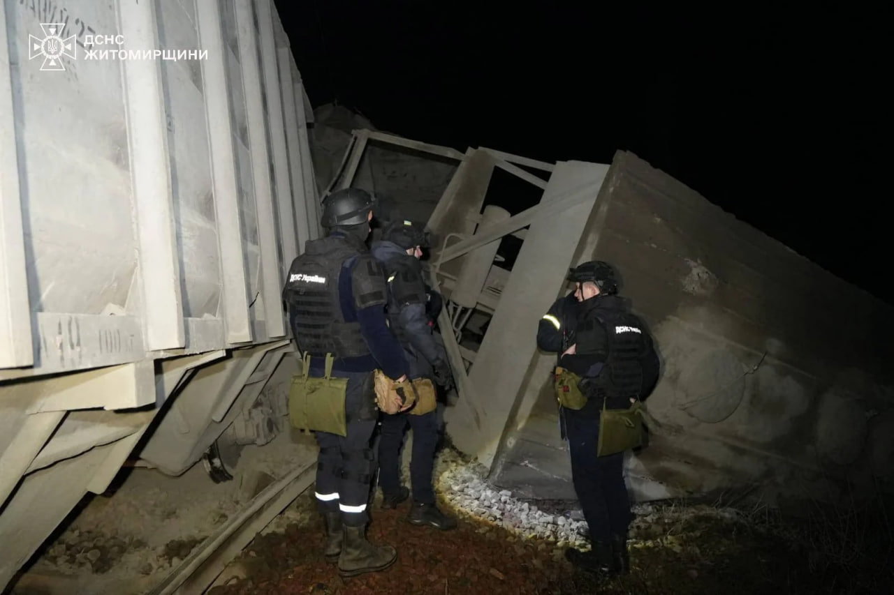 АТ "Укрзалізниця" підтвердило факт надзвичайної ситуації на ділянці залізниці біля Коростеня. Вантажний потяг зійшов з рейок, обставини події уточнюються, проте попередня версія вказує на пошкодження залізничної колії ударом дрона Shahed.