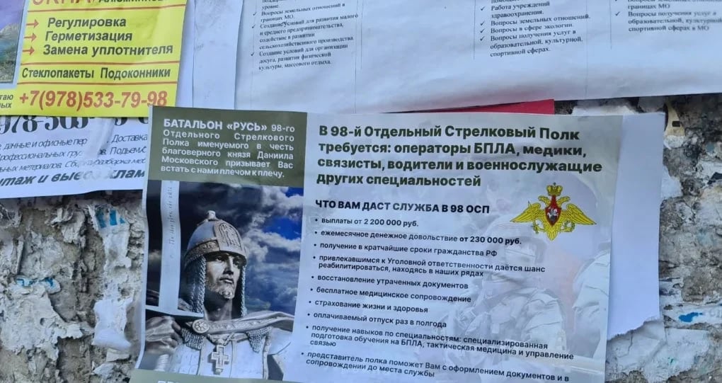 У тимчасово окупованому Криму розгорнуто масштабну кампанію з набору кадрів у силові структури РФ. За даними місцевого правозахисника, оголошення про службу у військових частинах і прикордонних підрозділах ФСБ масово розклеюються у парках, на зупинках громадського транспорту та на дошках оголошень житлових будинків Сімферополя.