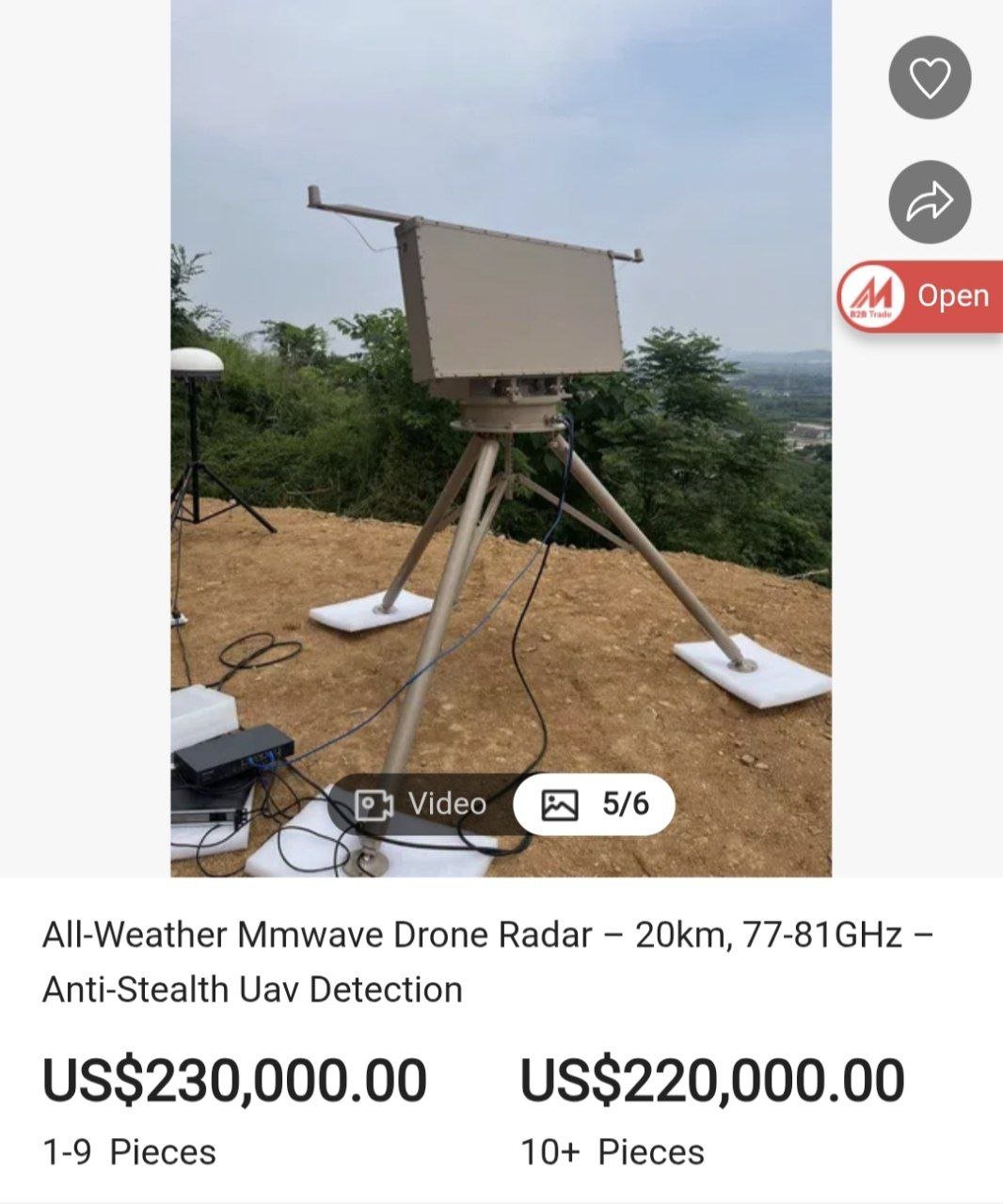 Такі радари продаються у Китаї та мають три радіуси дії: 5, 10 і 20 км. Ціна за один радар від 220 до 230 тисяч доларів.