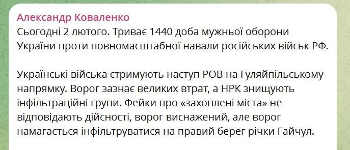 Українські війська продовжують стримувати тиск російських окупаційних сил на Гуляйпольському напрямку. Як зазначає військовий експерт Олександр Коваленко, спроба РФ швидко прорватися тут обернулася для неї серйозним провалом і великими втратами.