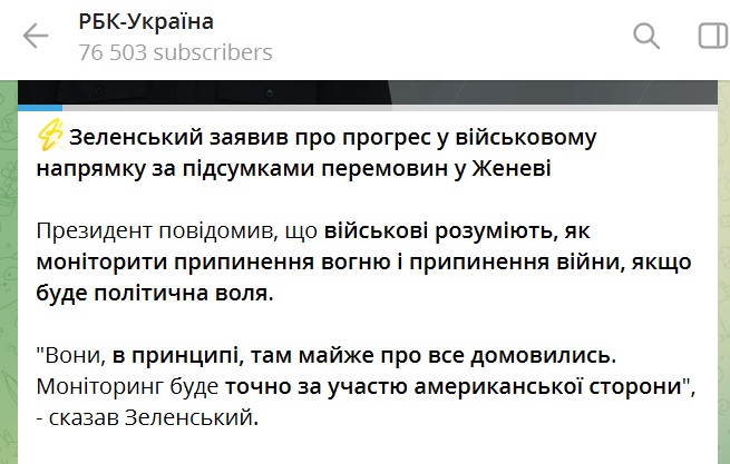 Президент Володимир Зеленський повідомив, що військові "майже про все домовилися" щодо моніторингу можливого припинення вогню. За його словами, якщо з’явиться політична воля, технічний механізм контролю вже зрозумілий, а деталі після повернення має доповісти генерал Гнатов.