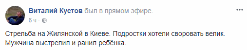 "Подростки хотели своровать велик. Мужчина выстрелил и ранил ребенка", — написал Кустов. Также к своему посту он приложил соответствующее видео.