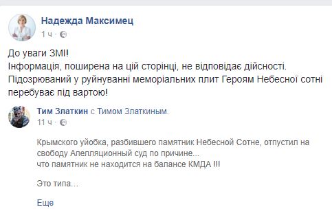 Ранее блогер и волонтер Тим Златкин написал, что суд отпустил вандала из Севастополя, так как памятник не находился на балансе КМДА. Он намекнул пользователь о самосуде и отмщении судьям за такой приговор.