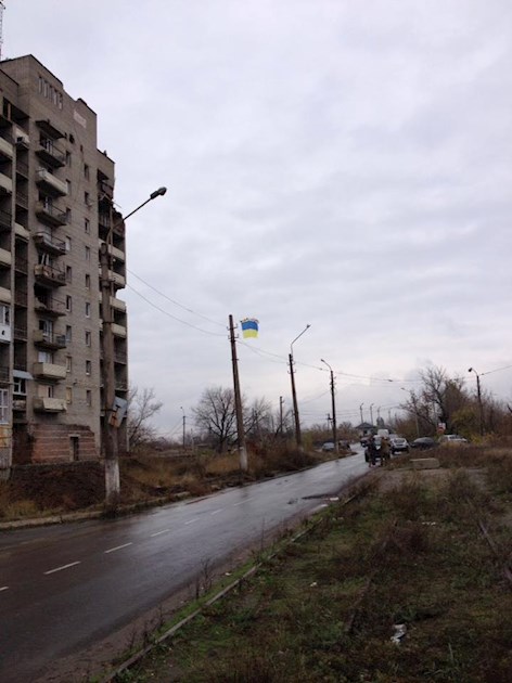 "Дорога в Авдеевскую промзону, сегодня, запуск очередного подарка в сторону Горловки. Флаг сшит в большей мере благодаря патриотам на оккупированных территориях", - сообщил Нойт.