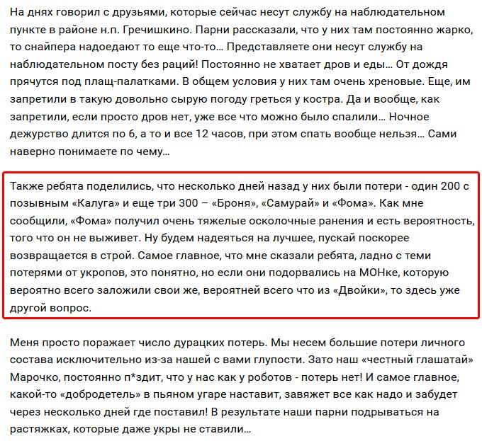 При этом руководство боевиков всячески скрывает потери, раздражая этим самих наемников сводных подразделений "ЛДНР".
