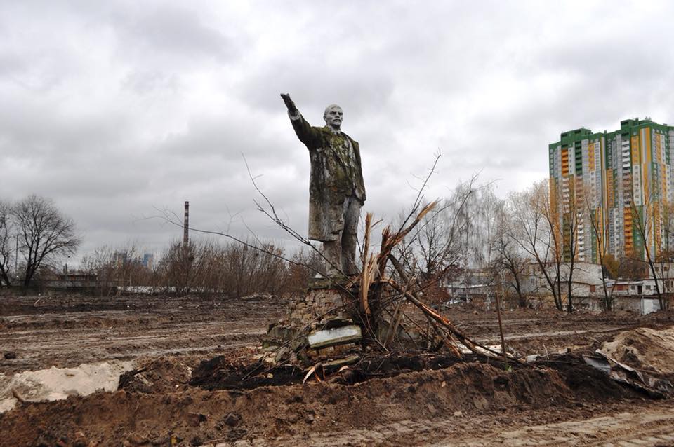 Так, с его слов, последний памятник остался на Минском массиве Киева. Фотографии монумента впечатляют: полуразрушенный, заросший мхом лидер коммунистического режима стоит на пустыре.