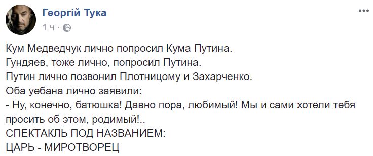 Тука жестко посмеялся над бездарной постановкой кремлевских пиарщиков, попытавшихся выдать Путина за эдакого “царя-миротворца”.