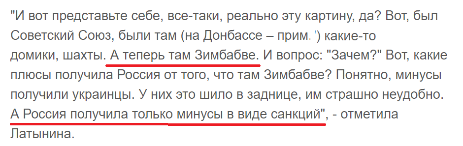 Она отметила, что Россия превратила Донбасс в Зимбабве, получив вместо предполагаемых плюсов отягощение в виде санкций.