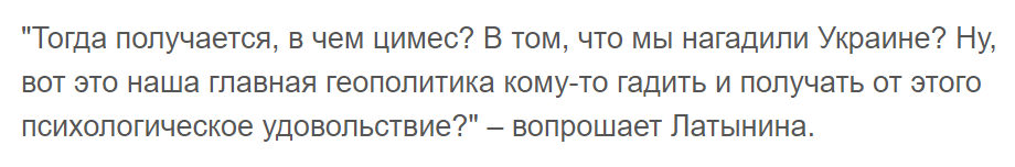 Латынина не понимает, какую глобальную цель войны на востоке Украины преследует российское руководство - журналистка дает понять, что главной геополитической целью России стало лишь желание "нагадить Украине".