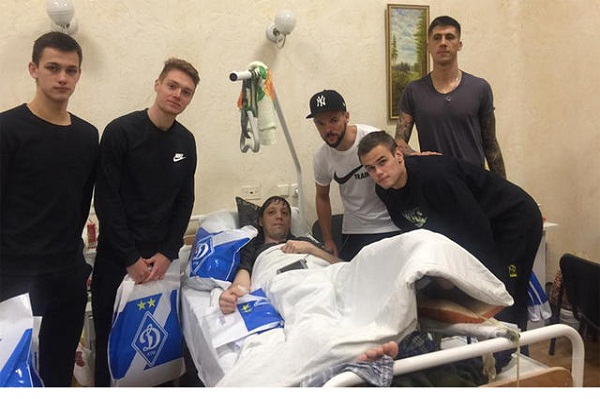 Футболисты киевского "Динамо" с одним из тренеров нанесли визит к бойцам АТО, которые проходят лечение в столичном военном госпитале.