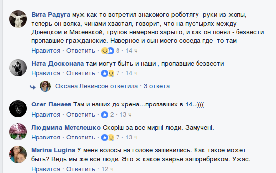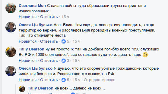 Пользователи предполагают, жертвы террористов – местные патриоты, и делятся информацией, что и на неподконтрольной Луганщине боевики используют шахтные выработки для того, чтобы скрыть свои преступления.