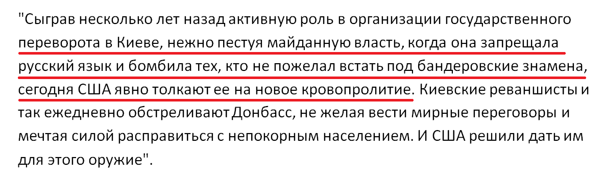 Российские власти утверждают, что отправкой ПТРК "Джавелин" для ВСУ Вашингтон "переступил черту". Рябков обвинил США в организации переворота в Киеве и помощи майданной власти в 2014 году, рассказав о бандеровцах, бомбежках и запрете русского языка.
