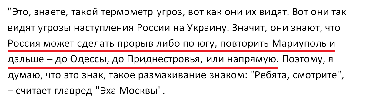 Венедиктов считает, что решение Трампа является знаковым, так как Вашингтон осознает реальность угроз от российской армии пойти на прорыв в южной Украине вплоть Одессы и Приднестровья.