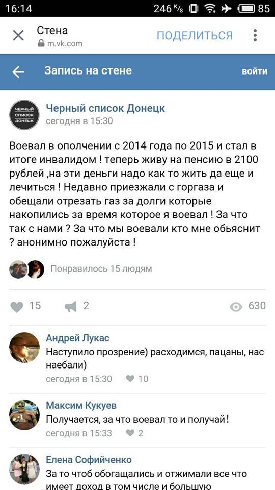 Наемник возмущен и пытается понять, почему с ним так поступили местные власти, не понимая при этом, за что именно он воевал. Более того, пользователи Сети из Донецка довольно правдиво и цинично ответили наемнику на его жалобы.
