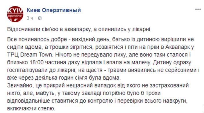 О произошедшем в аквапарке на Оболони инциденте написали активисты сообщества "Киев оперативный" в Facebook, передает "Диалог.UA".