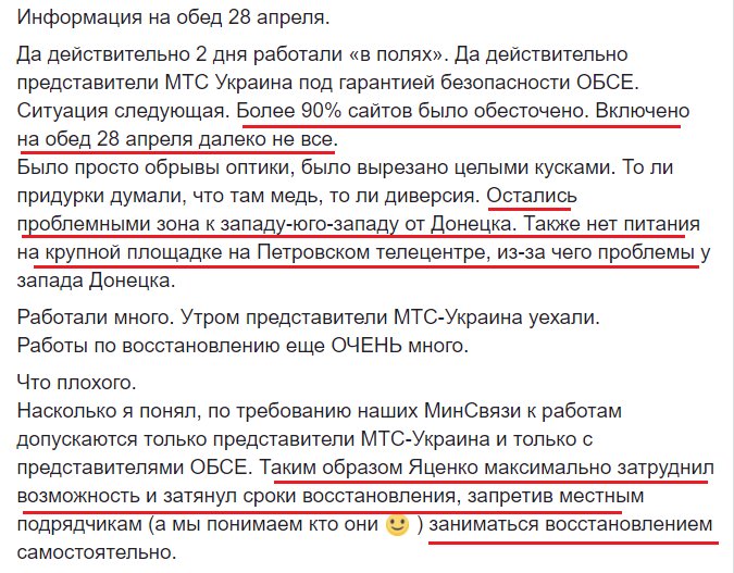 Подробности реальной картины попытки восстановить связь сообщил один из пользователи соцсети Роман Лесниченко, который ранее работал директором компании-провайдера "Матрикс" в Донецке.