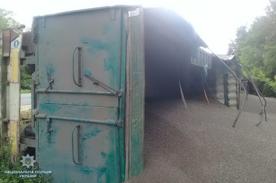 На Луганщине пьяный шофер перевернул в кювет грузовик с 20 тоннами гречневой крупы – кадры