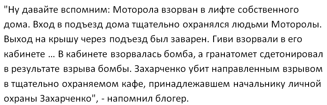 Блогер напомнил, как именно была проведена ликвидация Моторолы, Гиви и Захарченко.