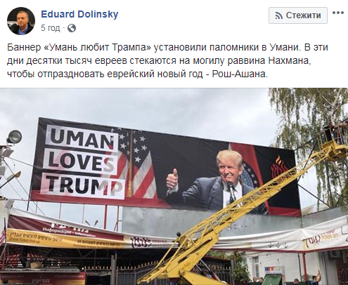 "Умань любит Трампа", - паломники из Израиля вывесили баннер в поддержку президента США